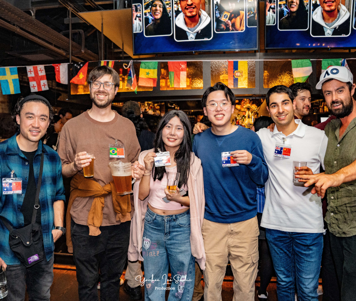 Just come along, grab a drink, and start chatting! When you arrive, visit the reception table at the back of the bar to get your flag badge. We'll quickly explain how everything works and share our guidelines, which you can also find at
